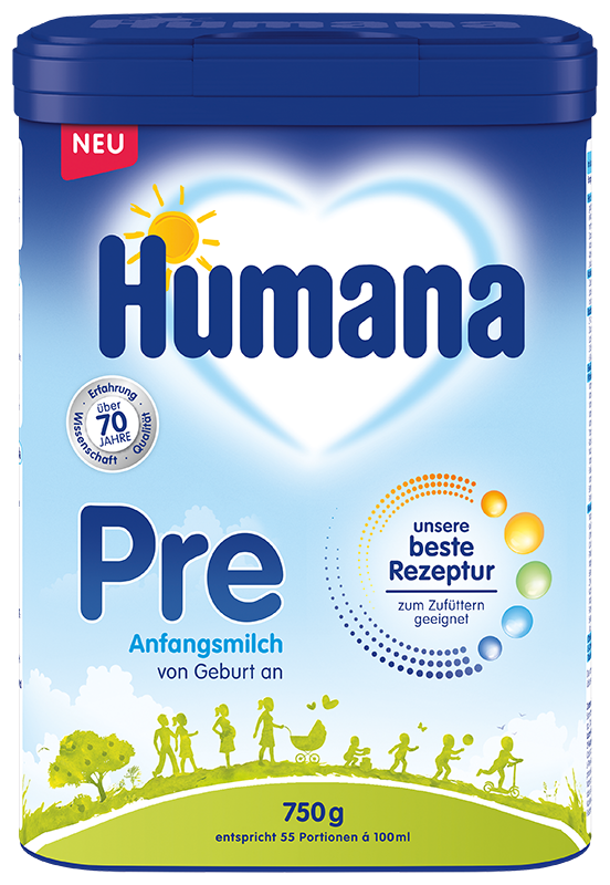 Humana Pre kann von Geburt an – zusätzlich zur Muttermilch oder als alleinige Nahrung – gefüttert werden.